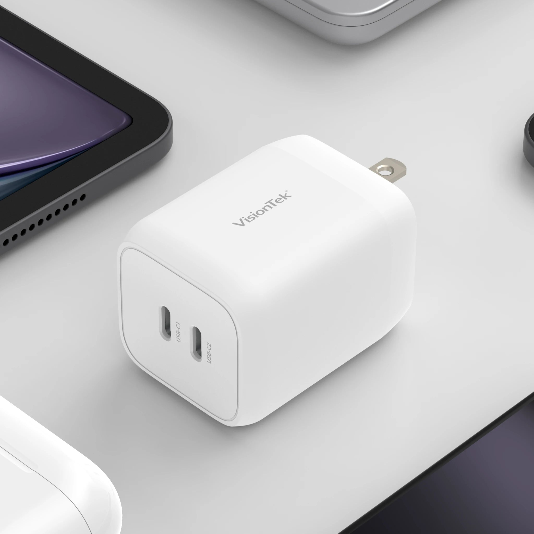 The VisionTek 100W GaN USB-C Wall Charger delivers high-speed charging for multiple devices at once. With 100W Power Delivery and GaN II efficiency, it supports laptops, tablets, smartphones, and USB-C accessories from brands like MacBook, Dell, HP, Samsung, and Google Pixel. Four smart ports — two USB-C and two USB-A — distribute power intelligently based on device needs. Built-in protections guard against overheating, overload, and short circuits, while its compact size fits easily into travel bags or office setups. UL, FCC, IEC, and NRCAN certified for safe, efficient charging wherever you go.